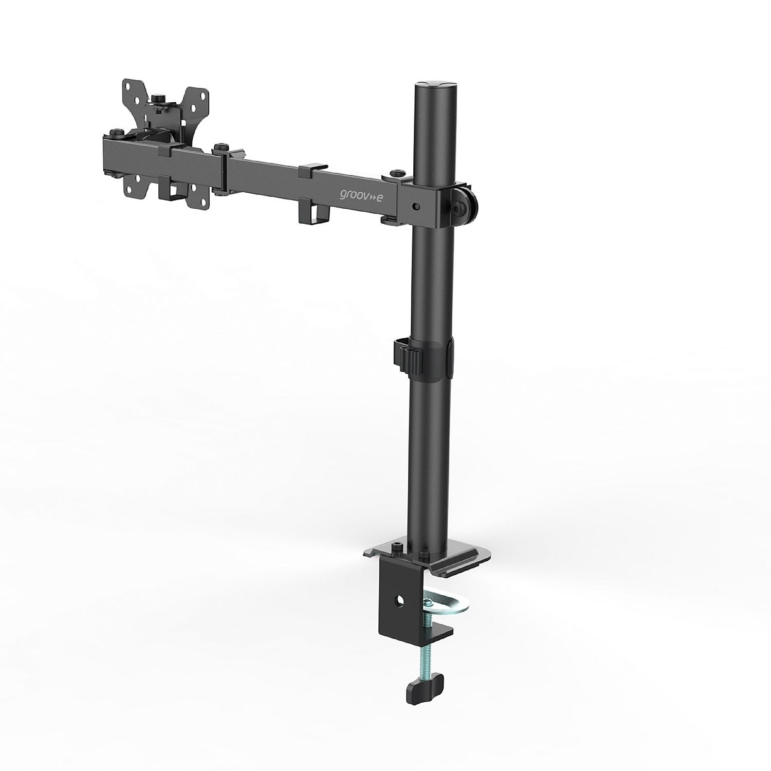 The Universal Desktop Monitor Mount offers a versatile solution for screens between 13” and 32”, with VESA compatibility and adjustable height, tilt, and swivel for an ergonomic setup. Made from durable steel, it supports monitors up to 8kg and includes both clamp and grommet mounting options for easy installation and long-lasting stability.